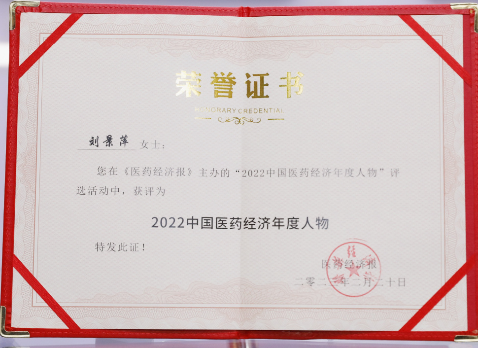 云顶集团药业集团董事长刘景萍当选“2022中国医药经济年度人物”